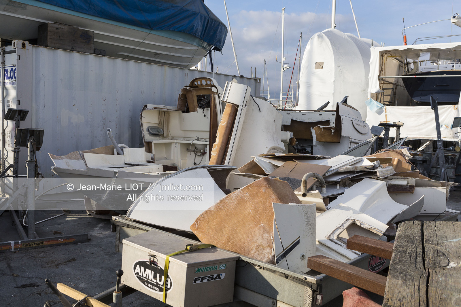 Bateau à moteur découpé suite à une avarie, port d'Antibes..Photo © Jean-Marie Liot.