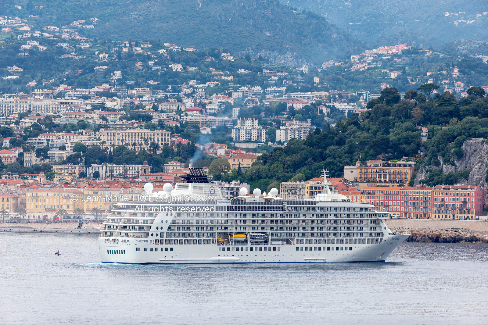 Vue aérienne d'un paquebot dans la baie de Nice. Photo © Jean-Marie Liot.