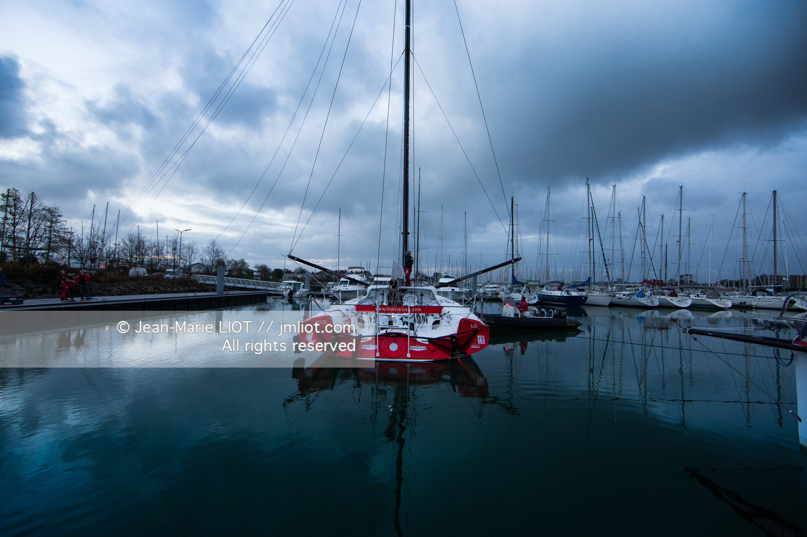 | Description | 90° test for IMOCA Maitre Coq, skipper Jeremie Beyou, in Port-La-Foret on April 8, 2016. Photo Jean-Marie Liot / DPPI / MAITRE COQ |