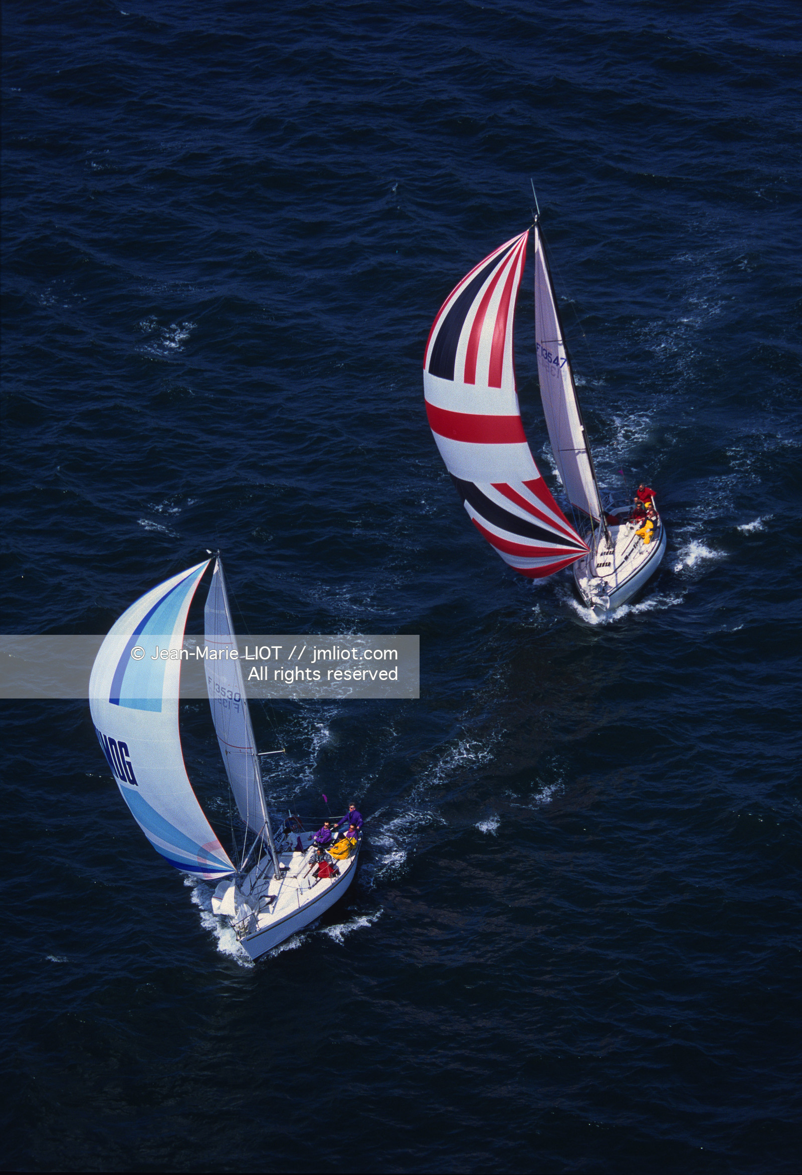 Dans la baie de Quiberon au départ de la Trinité sur mer, le spi Ouest France 1995. Photo © Jean-Marie Liot.