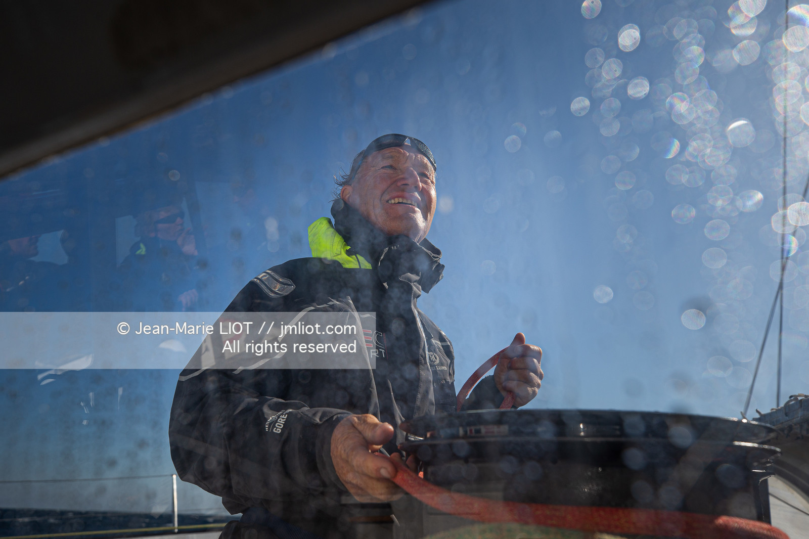 Description | Francis Joyon et son équipage à bord de l’Ultim IDEC Sport avant le départ de l'Asian Tour 2019-2020, le 18 septembre 2019, Photo © Jean-Marie LIOT / AleA. |