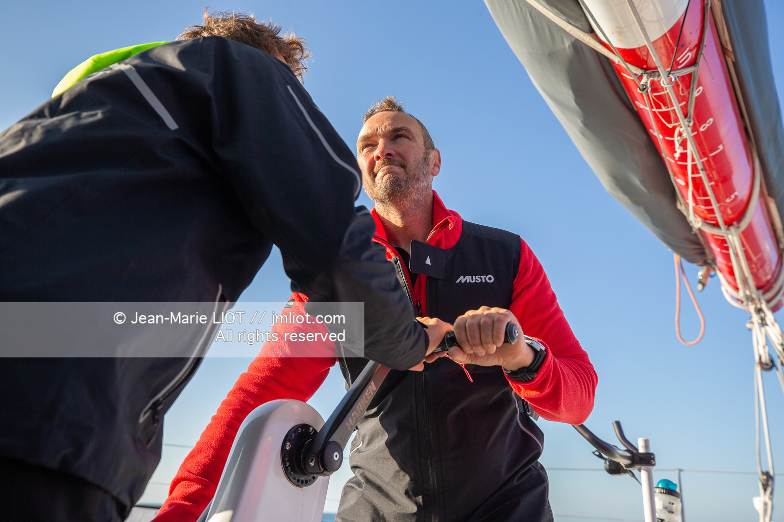 Description | Francis Joyon et son équipage à bord de l’Ultim IDEC Sport avant le départ de l'Asian Tour 2019-2020, le 18 septembre 2019, Photo © Jean-Marie LIOT / AleA. |