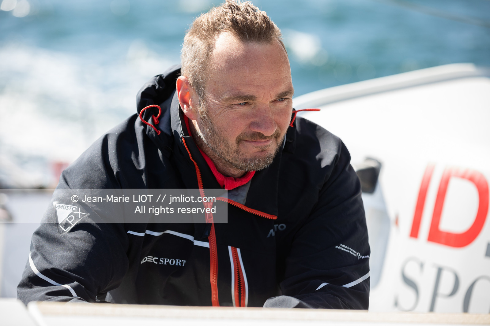 Description | Francis Joyon et son équipage à bord de l’Ultim IDEC Sport avant le départ de l'Asian Tour 2019-2020, le 18 septembre 2019, Photo © Jean-Marie LIOT / AleA. |