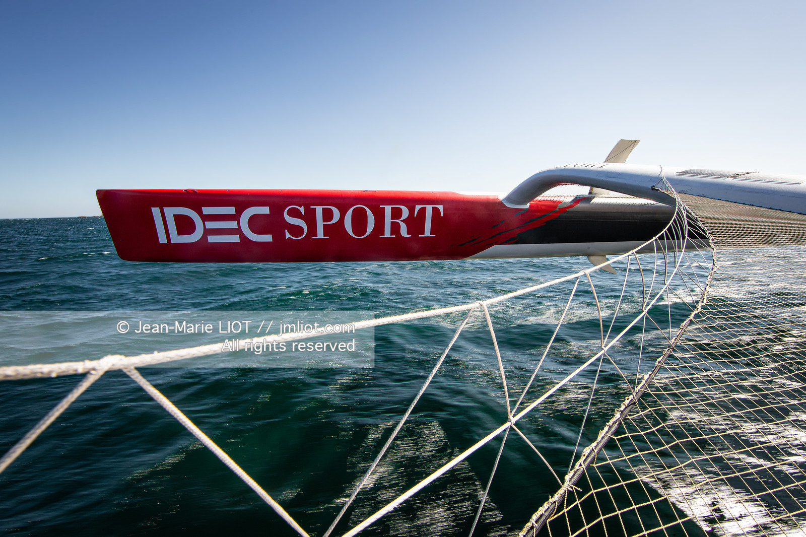 Description | Francis Joyon et son équipage à bord de l’Ultim IDEC Sport avant le départ de l'Asian Tour 2019-2020, le 18 septembre 2019, Photo © Jean-Marie LIOT / AleA. |