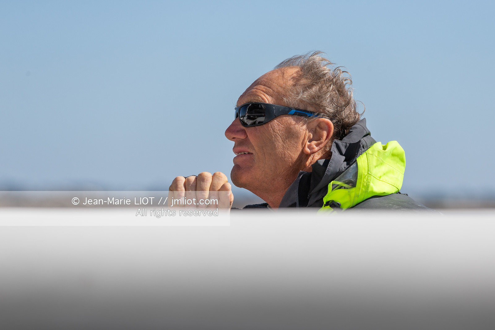 Description | Francis Joyon et son équipage à bord de l’Ultim IDEC Sport avant le départ de l'Asian Tour 2019-2020, le 18 septembre 2019, Photo © Jean-Marie LIOT / AleA. |