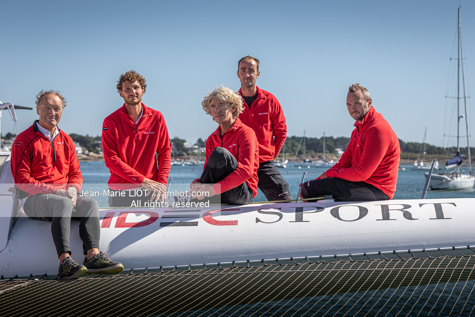 Description | Francis Joyon et son équipage à bord de l’Ultim IDEC Sport avant le départ de l'Asian Tour 2019-2020, le 18 septembre 2019, Photo © Jean-Marie LIOT / AleA. |