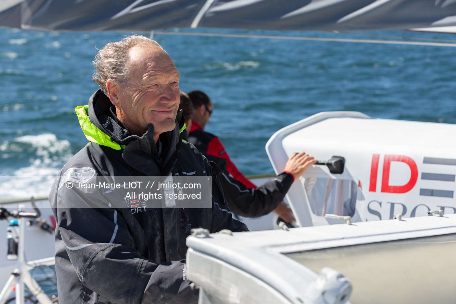Description | Francis Joyon et son équipage à bord de l’Ultim IDEC Sport avant le départ de l'Asian Tour 2019-2020, le 18 septembre 2019, Photo © Jean-Marie LIOT / AleA. |