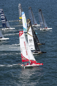 Le Diam 24 est le monotype du Tour Voile depuis 2015. Trimaran léger transportable de 7,20m contruit par le chantier ADH inotec, il a été dessiné par le chantier VPLP design.
