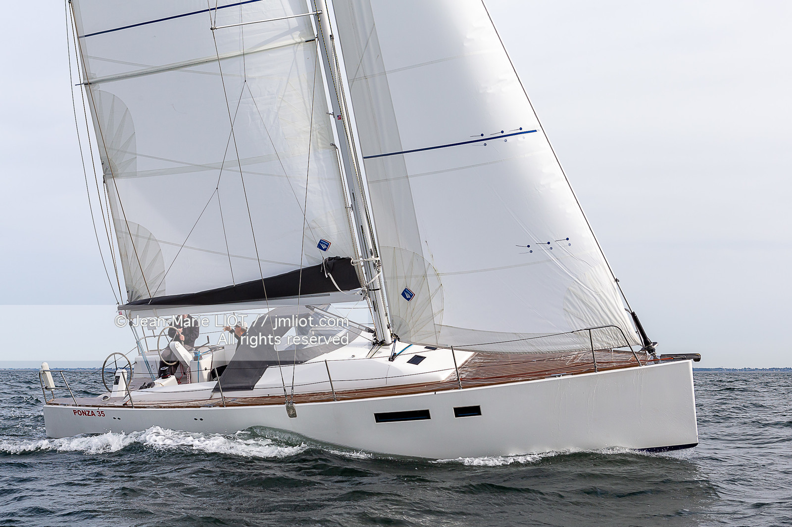 Essai du nouveau Ponza 35 dans la baie de Quiberon au large de la Trinité sur mer, le 18 avril 2019. Photo © Jean-Marie LIOT - www.jmliot.com.