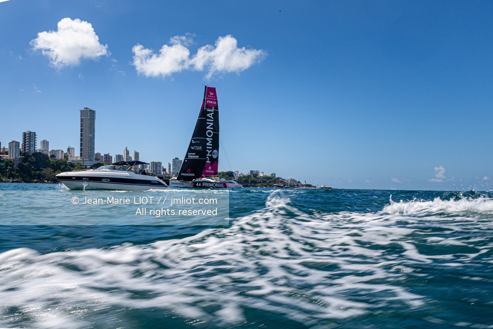 | Description | Arrivée de Sebastien Rogues et mathieu Souben, skippers du multi 50 Primonial, le 09 novembre 2019 à Salvador de Bahia, Brésil. Photo © Jean-Marie Liot / AleA. |