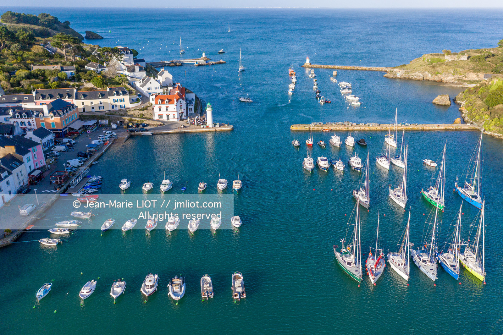 vue aérienne du port de Sauzon à Belle île en mer. Photo © Jean-Marie Liot.