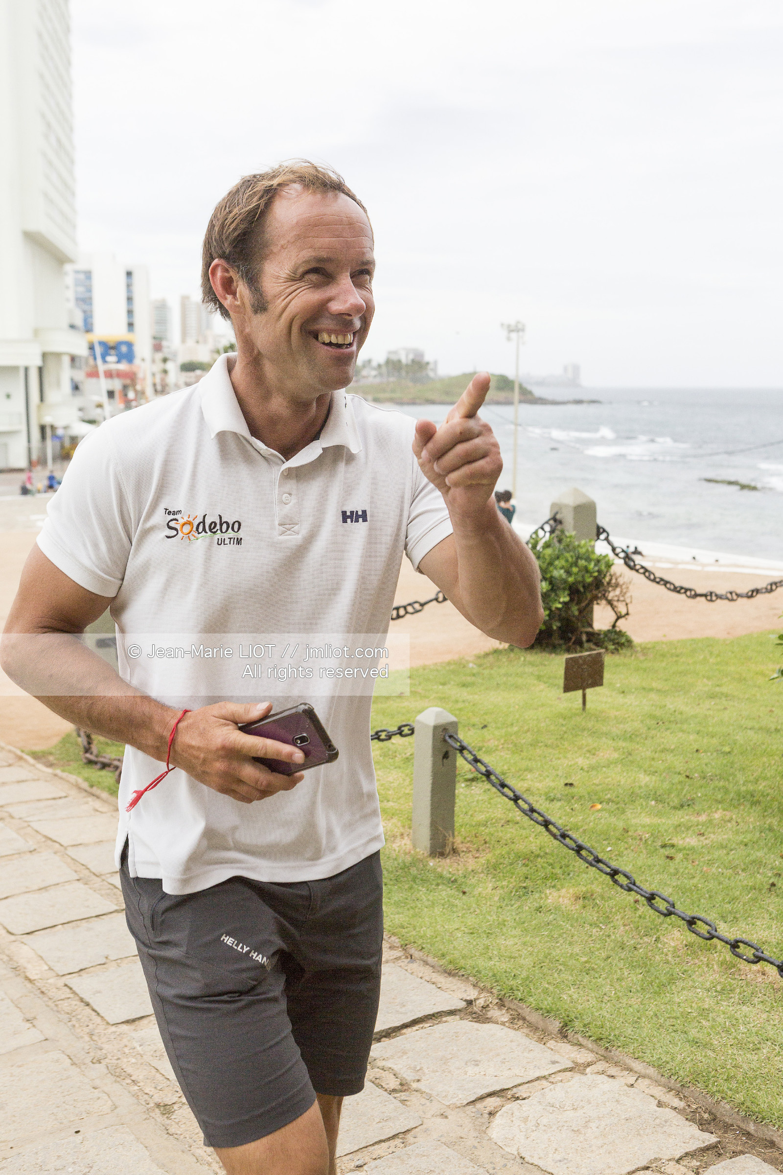 | Description | .Meeting with Thomas Coville, skipper Sodebo Ultim, winner of the Transat Jacques Vabre 2017 with Jean-Luc Nélias, for Journal du Nautisme with journalist Frederic Pelatan, off Barra lighthouse, Salvador de Bahia (BRA), on november 14, 2017 - Photo Jean-Marie Liot - www.jmliot.com |