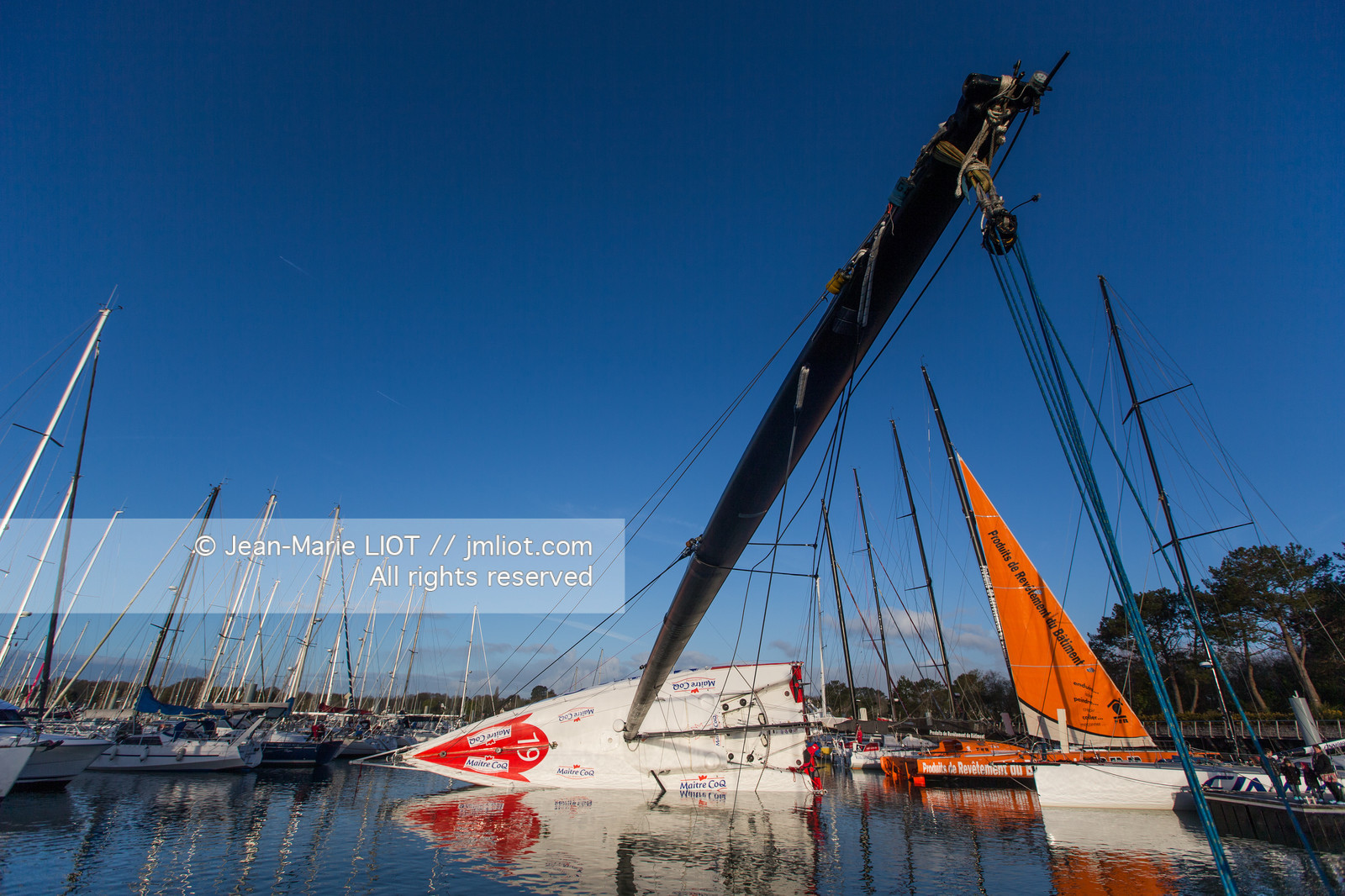 | Description | 90° test for IMOCA Maitre Coq, skipper Jeremie Beyou, in Port-La-Foret on April 8, 2016. Photo Jean-Marie Liot / DPPI / MAITRE COQ |