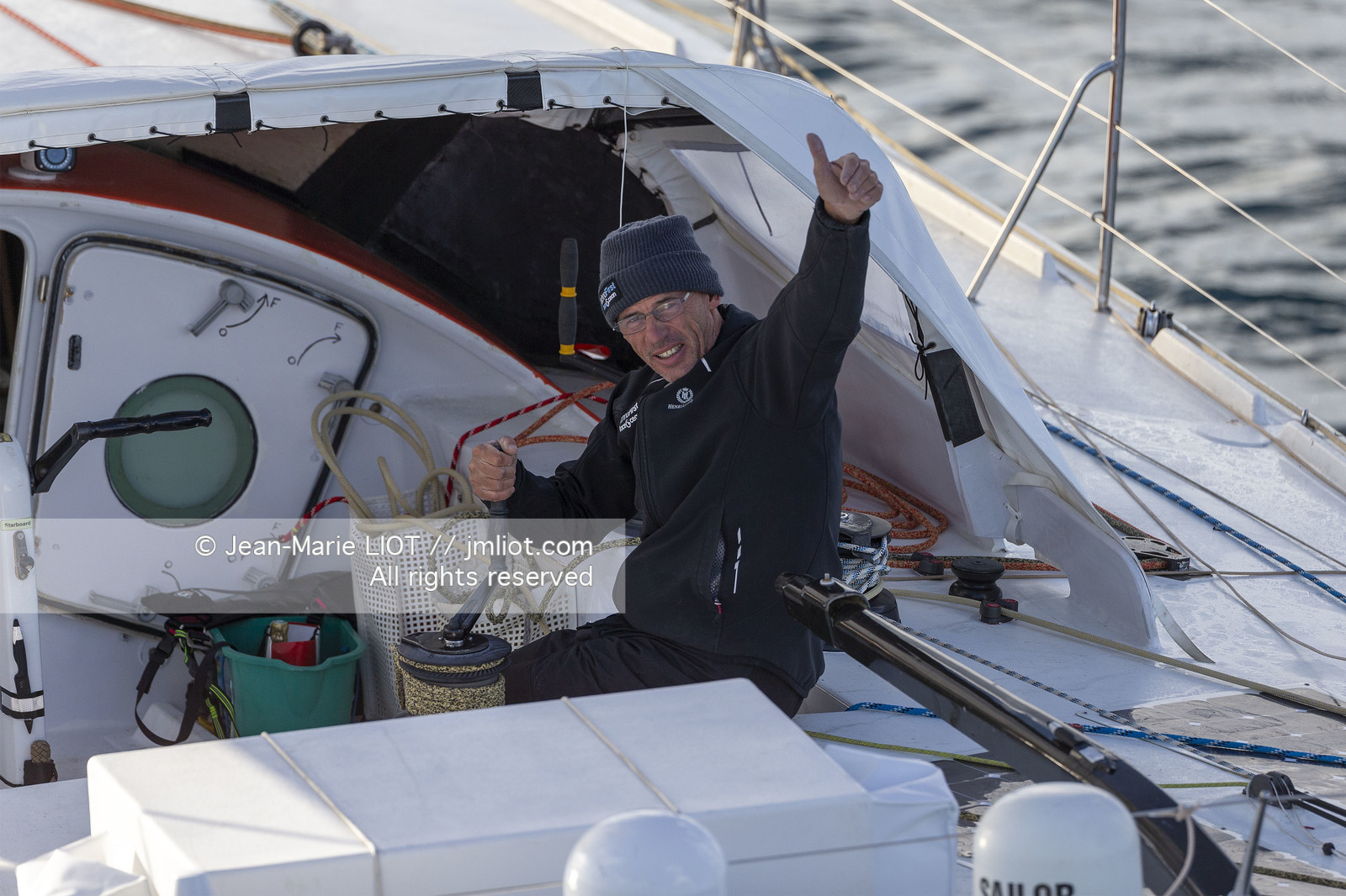 | Description | Sébastien Destremau, skipper de l’IMOCA Face Ocean, les Sables d'Olonne le 06 novembre 2016, départ du Vendée Globe 2016-17. Photo © Jean-Marie Liot - www.jmliot.com. |